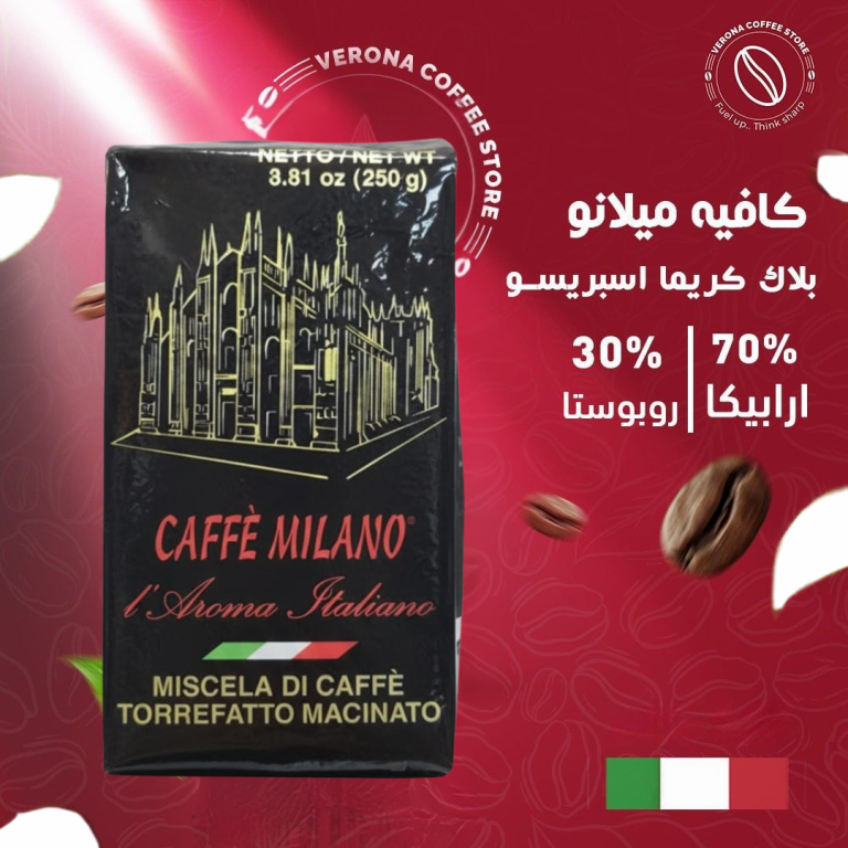 كافية ميلانو بلاك كريما مطحون فاكيوم ( 70% – 30% ريبوستا ) 250 جرام